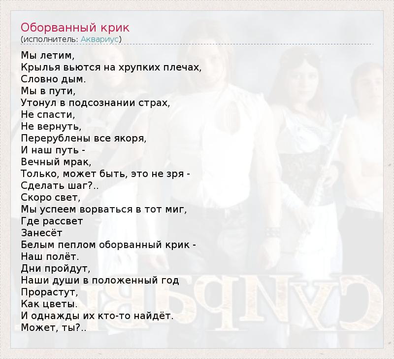 А как ты думаешь, о чем песня "Оборванный крик" ?