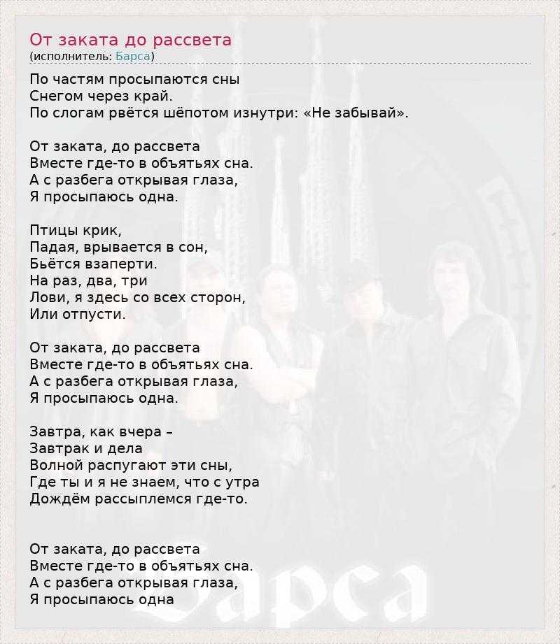 ГлавнаяИсполнителиБарсаОт заката до рассвета
