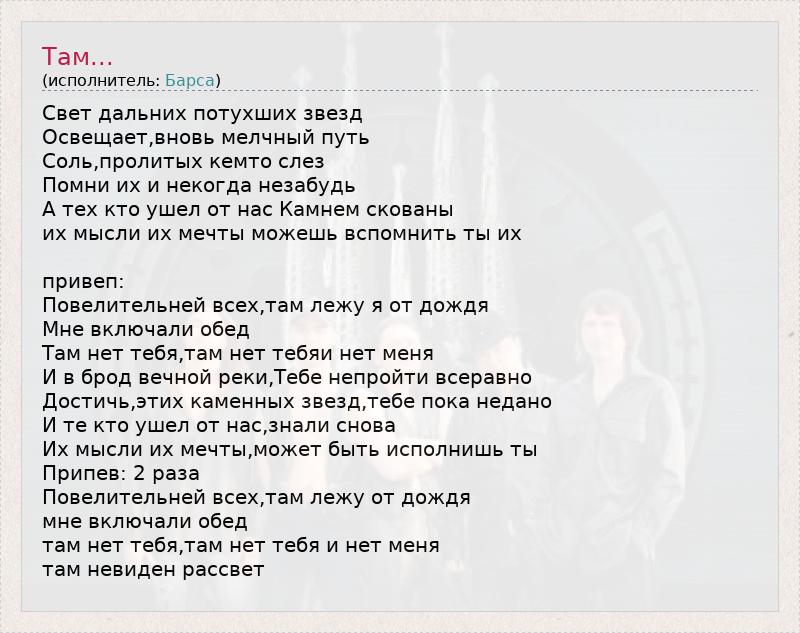 Это интересно:БАРСА (Москва)А вы слышали, какой рок играет «Барса»? Профессиональный, современный, романтический. Первые шаги творчества Паша Барса делал в Испании в прекрасной старой Барселоне. Там же и родилось название группы «Барса», что является принятым в тех местах, сокращенным названием города. Но его гитара и романтические стихи желали создать нечто новое. Собрав группу из талантливых... продолжение