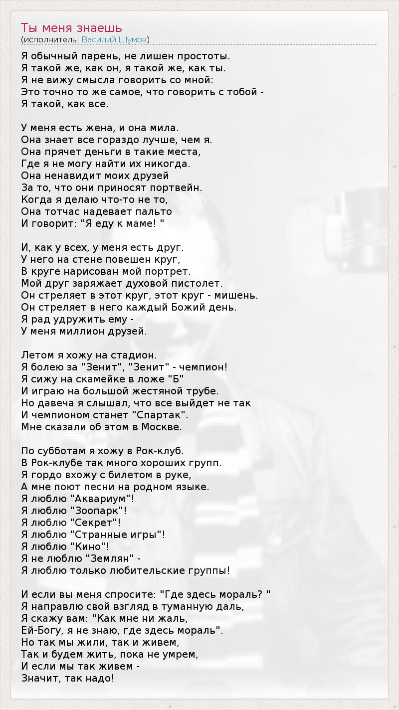 А как ты думаешь, о чем песня "Ты меня знаешь" ?