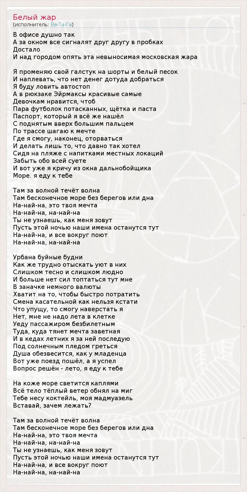 А как ты думаешь, о чем песня "Белый жар" ?