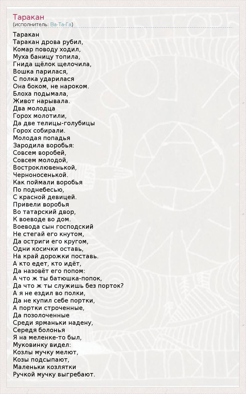Это интересно:Группа «Ва-Та-Га»: Александр Леонов - вокал, духовые, струнные, пила; Ольга Гайдамак – вокал, скрипка; Алексей Деревлев – гитара; Аркадий Соколов – перкуссия; Сергей Шелепин – контрабас.Образовалась в августе 2000 года в Петрозаводске и до 2004 года носила название «Reel». В составе ансамбля четыре профессиональных музыканта и лидер коллектива - вокалист и мультиинструменталист Александр... продолжение