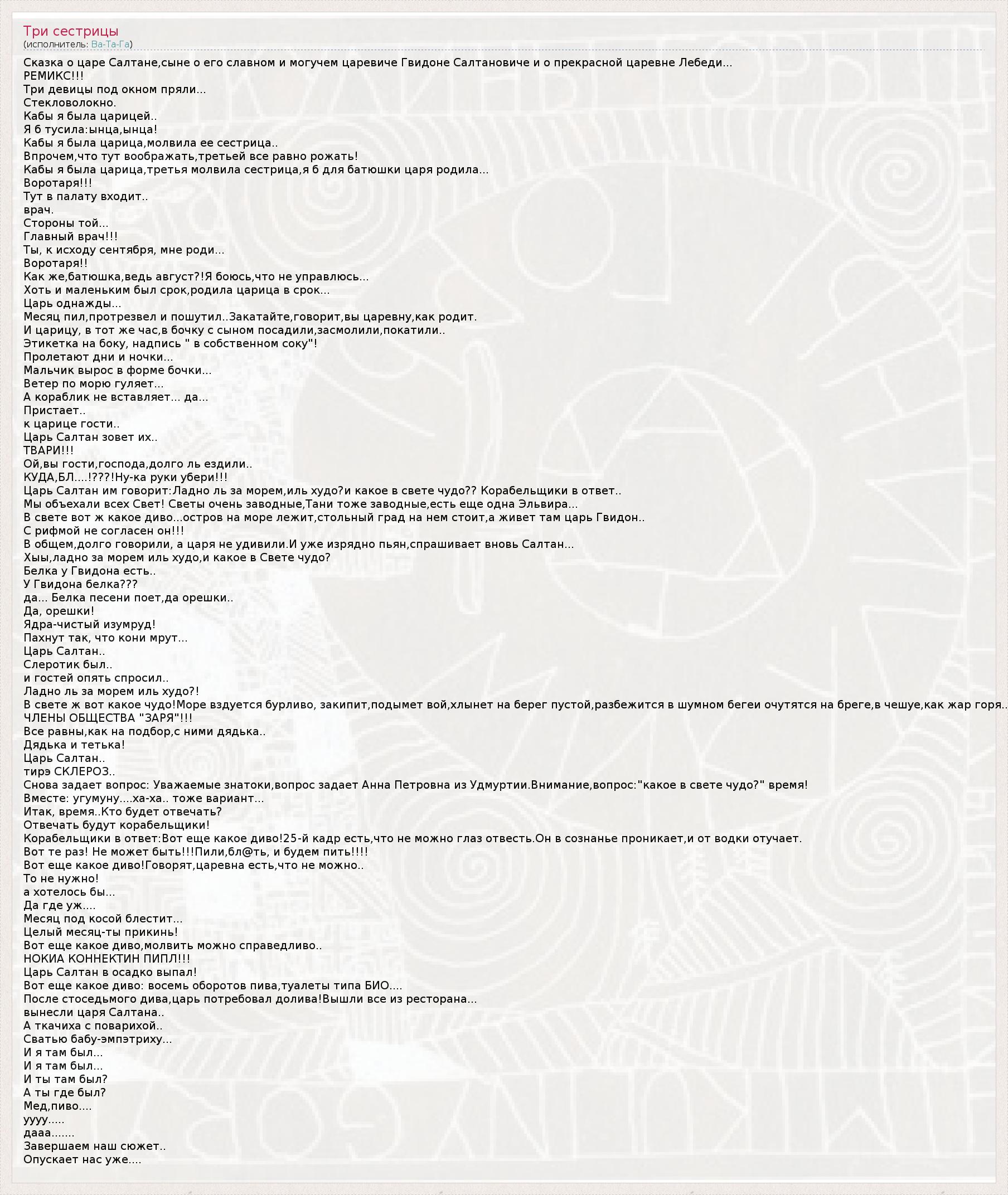 Tsar Saltan he says : Okay, eh overseas, il bad , and what is in the light of a miracle ?? Mariners in response ..
