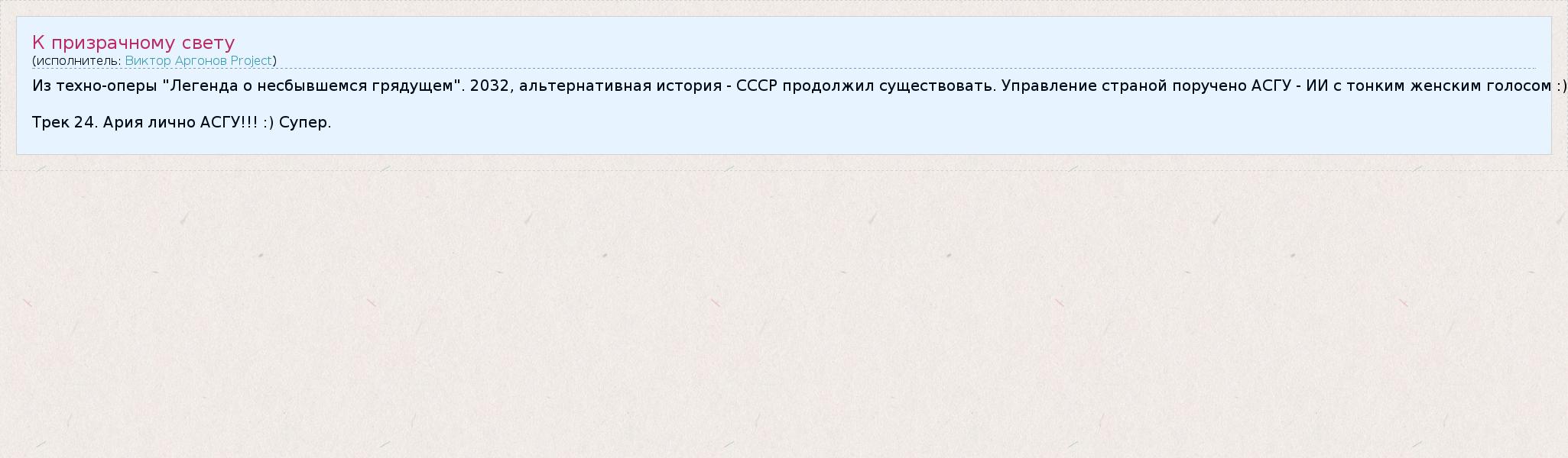 А как ты думаешь, о чем песня "К призрачному свету" ?