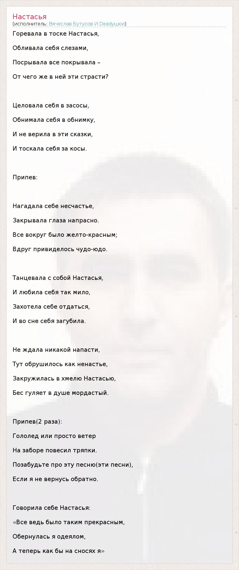 А как ты думаешь, о чем песня "Настасья" ?