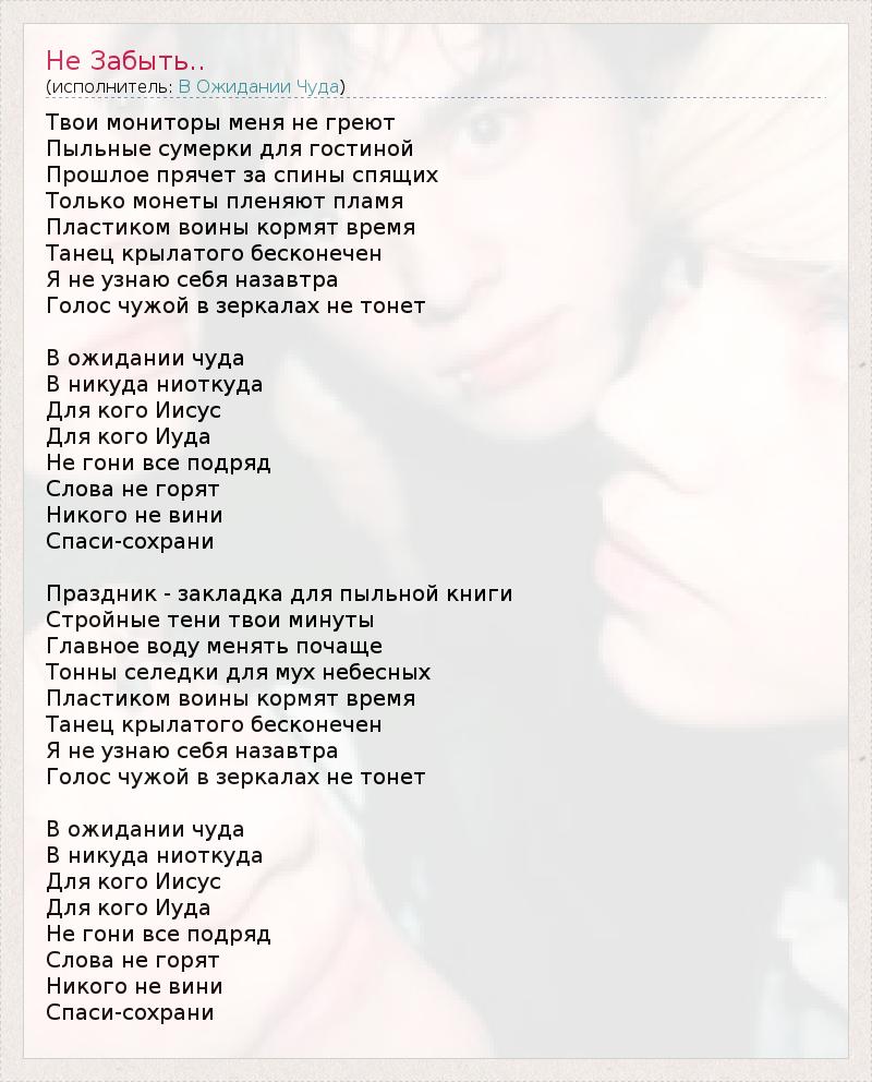 А как ты думаешь, о чем песня "Не Забыть.." ?