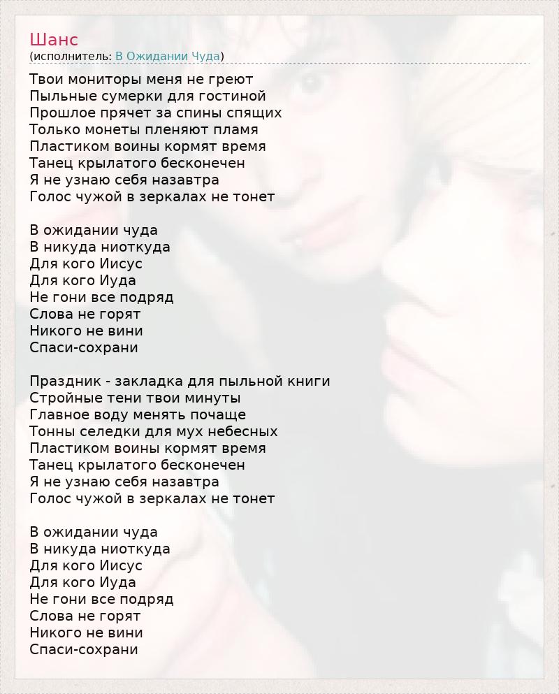 А как ты думаешь, о чем песня "Шанс" ?