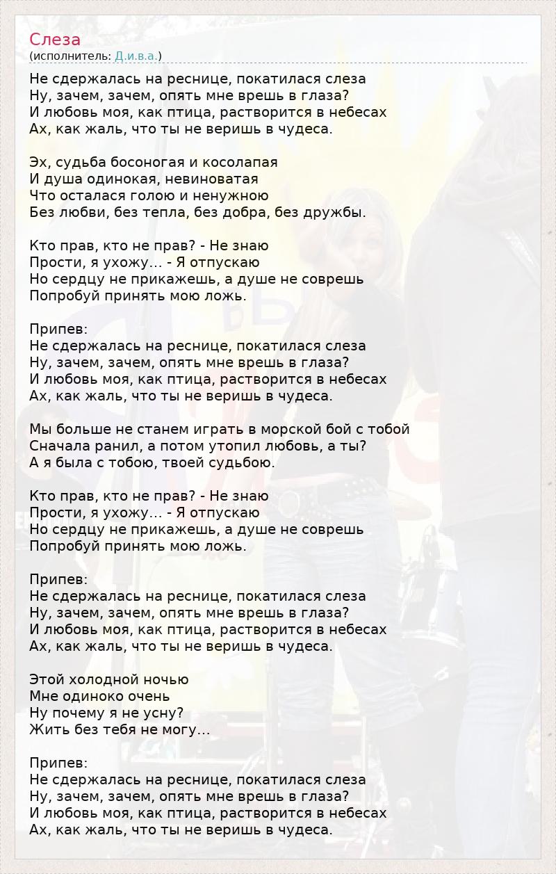 Ну, зачем, зачем, опять мне врешь в глаза?
