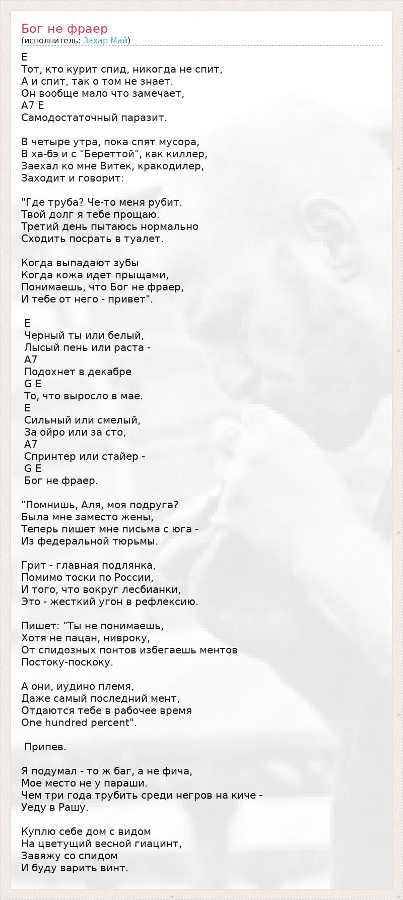 А как ты думаешь, о чем песня "Бог не фраер" ?