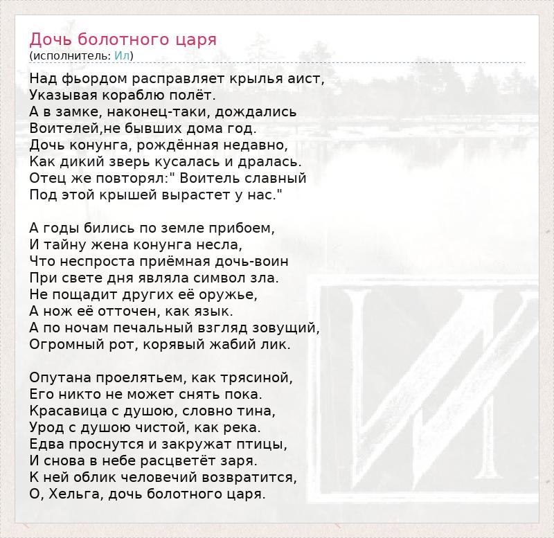 А как ты думаешь, о чем песня "Дочь болотного царя" ?