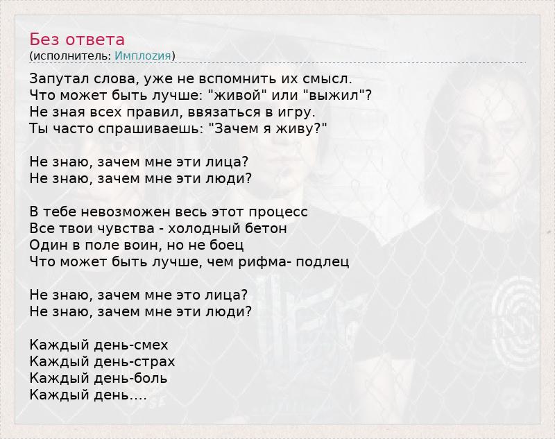 А как ты думаешь, о чем песня "Без ответа" ?