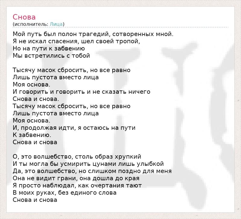 Это интересно:Если вы слушаете хип-хоп группу "Лица" ,просьба тегать так: "Группа Лица".Группа ЛИЦ@ родилась на осколках двух групп: Post Scriptum и Полная Неизвестность.На дворе стояла ранняя осень 2004…Саня «А.А.» Ададуров и Вовчик «Пропан» Добрицкий, а так же Андрей «Зай» Зайцев, решили вместе начать делать качественную, можно даже сказать, профессионально аранжированную, музыку.Пока... продолжение