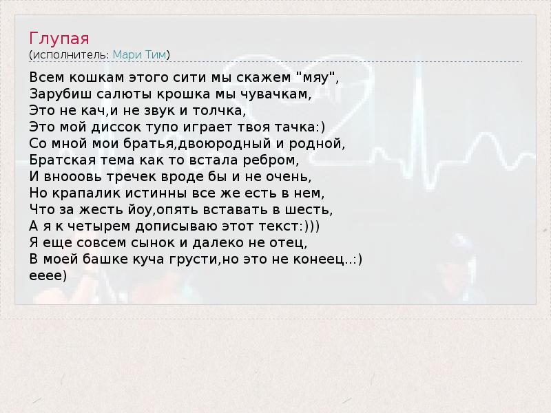 А как ты думаешь, о чем песня "Глупая" ?