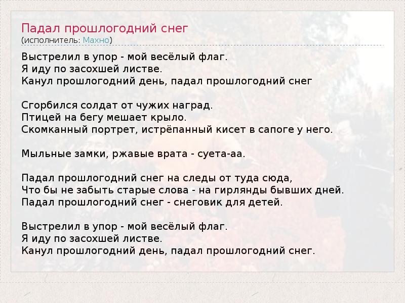 ГлавнаяИсполнителиМахноПадал прошлогодний снег