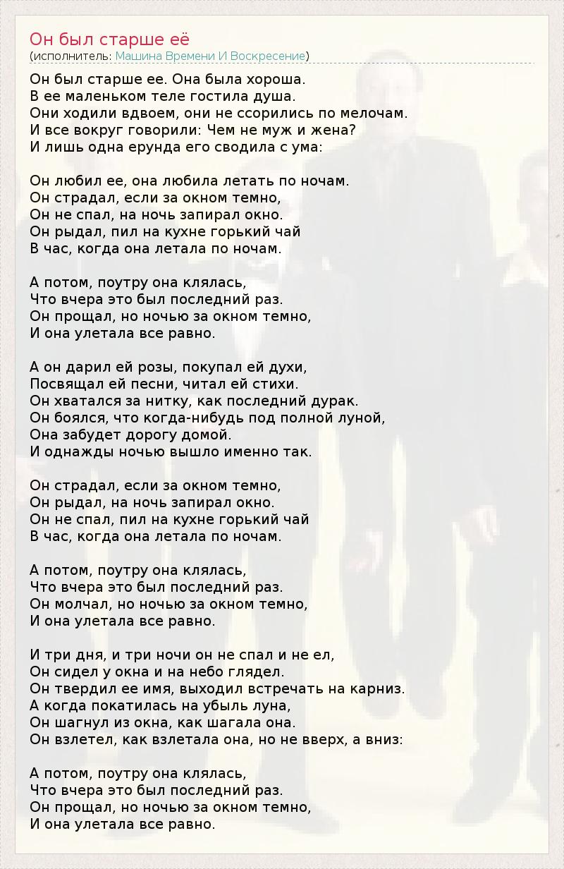 Машина времени - Он был старше ее - Текст песни, слушать онлайн Машина времени - Он был старше ее - Текст песни, слушать онлайн