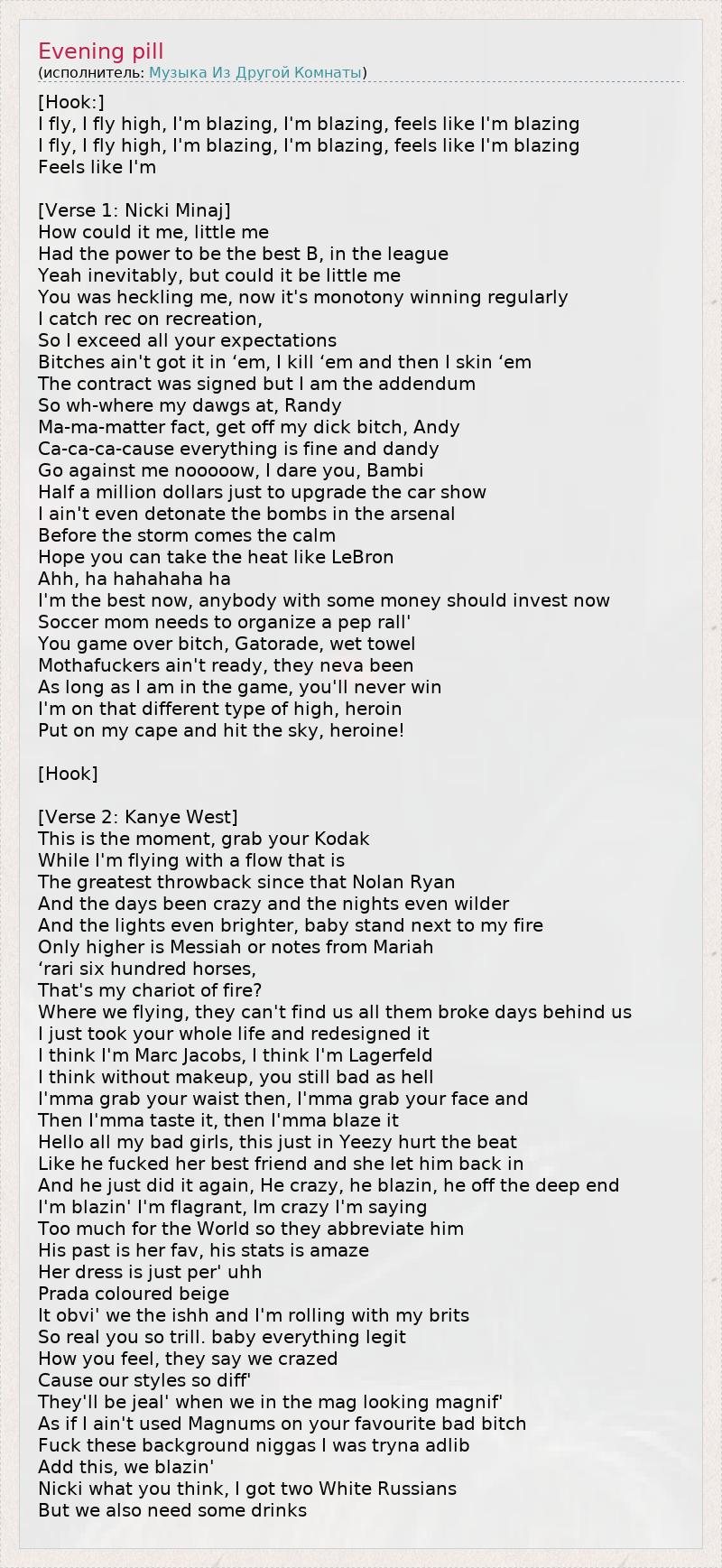 I fly, I fly high, I'm blazing, I'm blazing, feels like I'm blazing