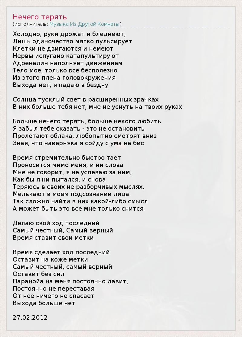 А как ты думаешь, о чем песня "Нечего терять" ?