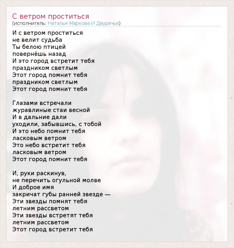 А как ты думаешь, о чем песня "С ветром проститься" ?
