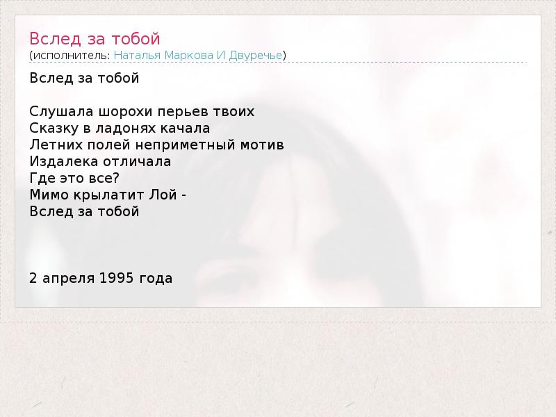 А как ты думаешь, о чем песня "Вслед за тобой" ?