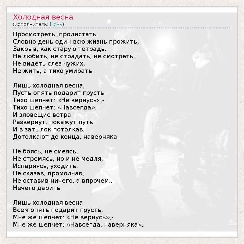 А как ты думаешь, о чем песня "Холодная весна" ?