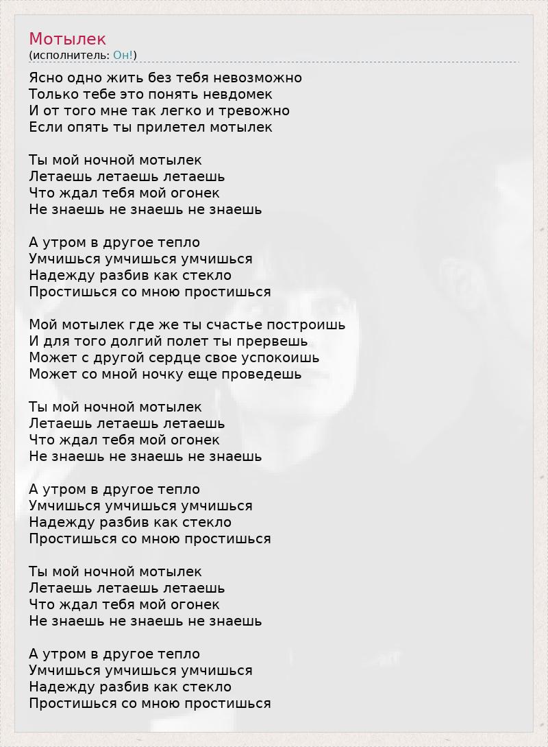 А как ты думаешь, о чем песня "Мотылек" ?