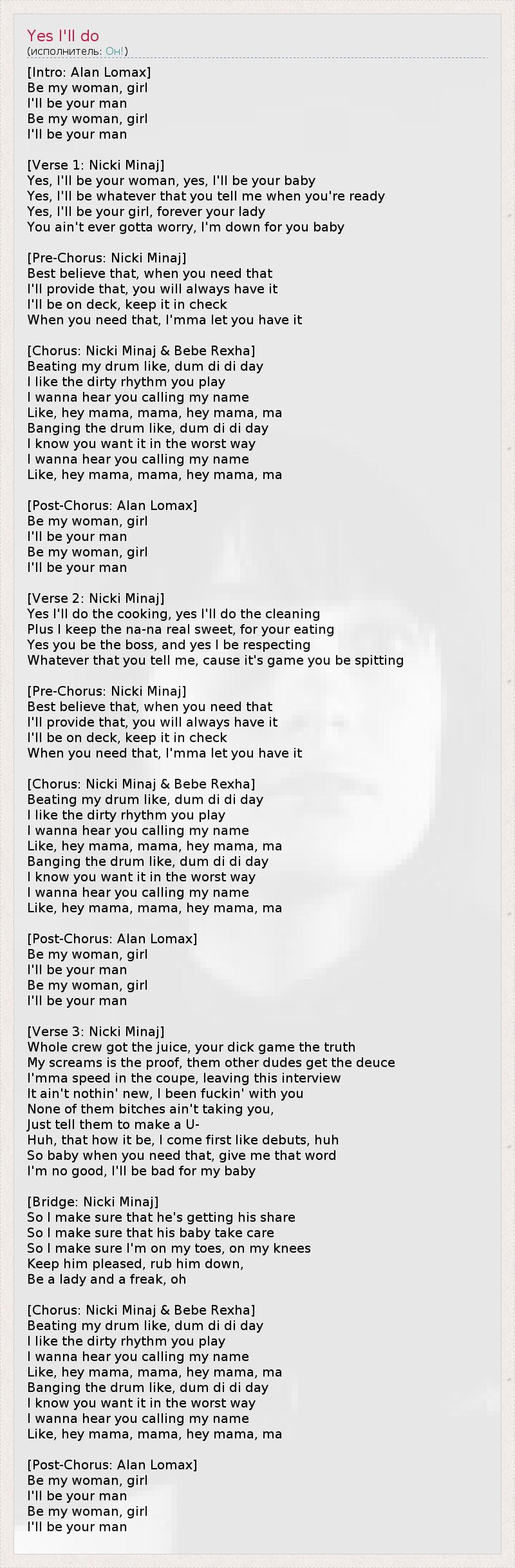Да, я буду твоей женщиной. Да, я буду твоей малышкой.