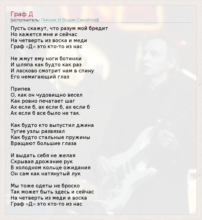 Это интересно:В 2004 году группа Пикник выпустила альбом "Тень Вампира", записанный совместно с Вадимом Самойловым (Агата Кристи).