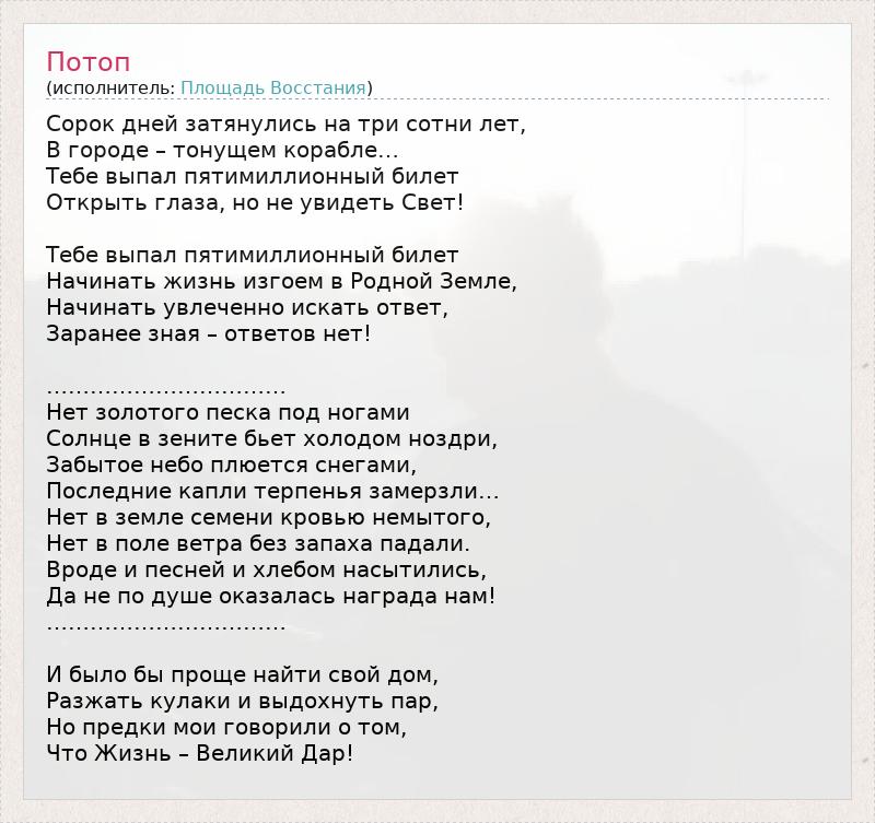 Это интересно:Творческая Автономия ПЛОЩАДЬ ВОССТАНИЯ - музыкальный коллектив из Санкт-Петербурга, сочетающий в своем творчестве живую музыку, визуальное искусство и элементы театрального шоу.Датой рождения группы можно считать 9 февраля 2008 года – день первого публичного выступления коллектива в рамках фестиваля «JAM» в культовом Rocks Club’е.С 2009 года ТА "ПЛОЩАДЬ ВОССТАНИЯ"... продолжение