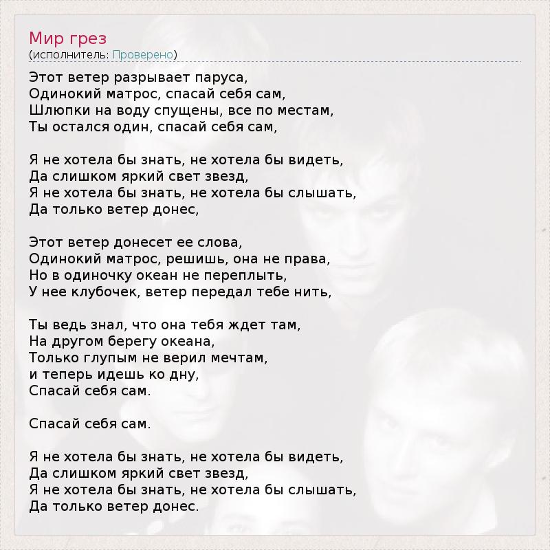 Одинокий матрос, решишь, она не права,