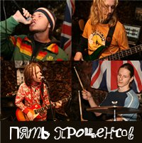 Это интересно: Группа «Пять процентов» образовалась в марте 2010 года, именно тогда состоялась первая задокументированная репетиция. Стиль «Пять процентов» — это смесь из хип-хопа, раггамафина, фанка и рока. Никаких стилевых ограничений не предусматривалось, но практика показала, что в этих полу размытых рамках группа чувствует себя довольно комфортно. Тексты песен имеют закамуфлированный остросоциальный характер, но закамуфлирован он настолько, что остроты и социальности почти не заметно. В большинстве случаев основная часть текста исполняется методом «читки», это — дань хип-хопу, из которого к «Пяти процентам» тянутся некоторые корни.