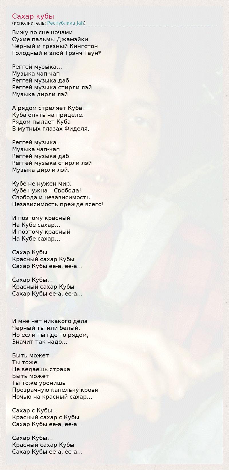 А как ты думаешь, о чем песня "Сахар кубы" ?