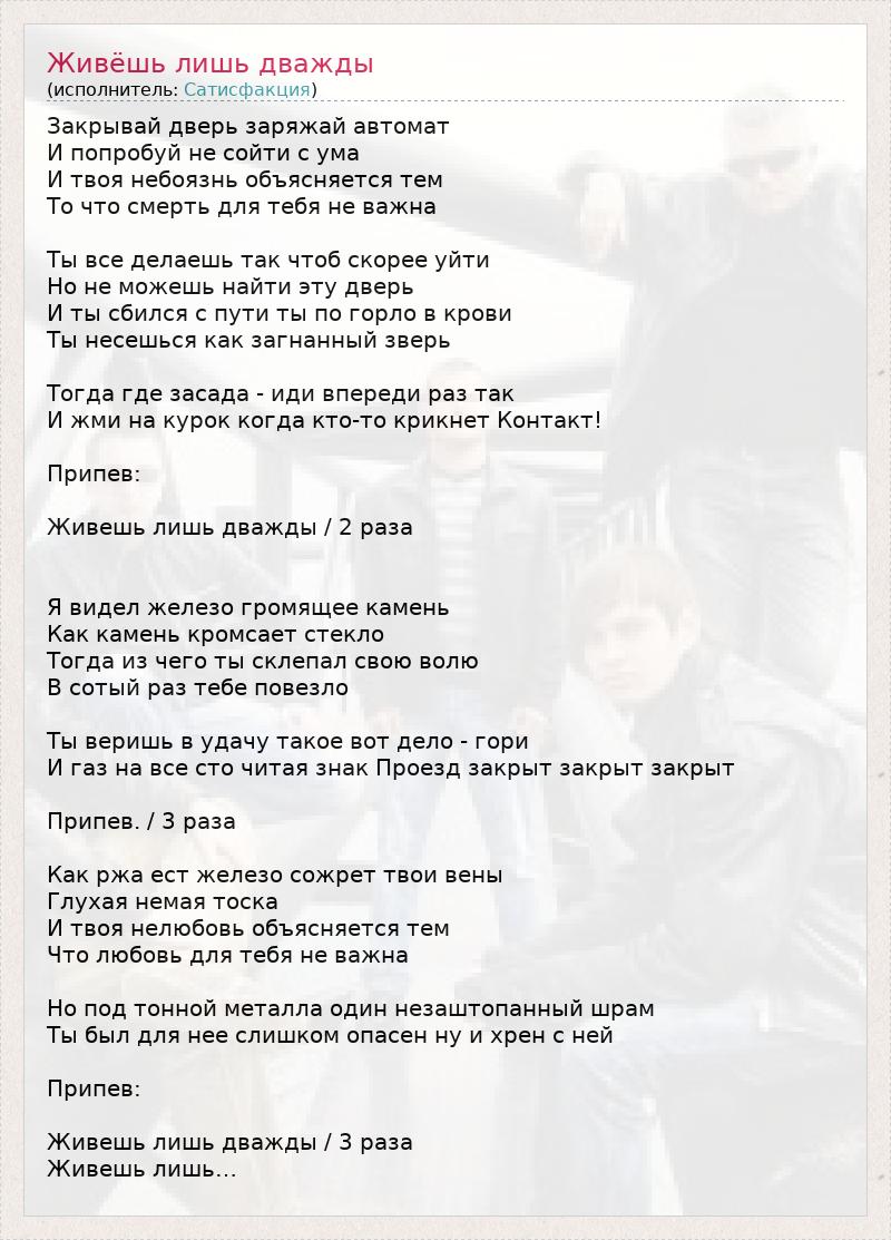 ГлавнаяИсполнителиСатисфакцияЖивёшь лишь дважды