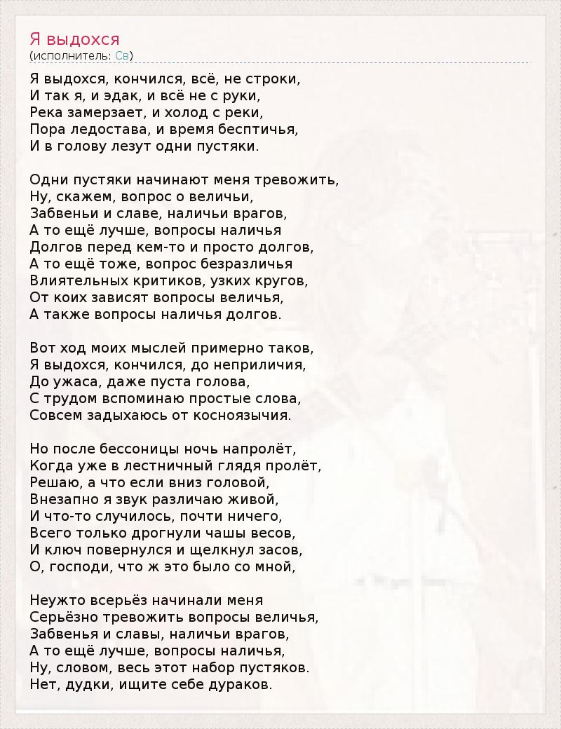 Я выдохся, кончился, всё, не строки,