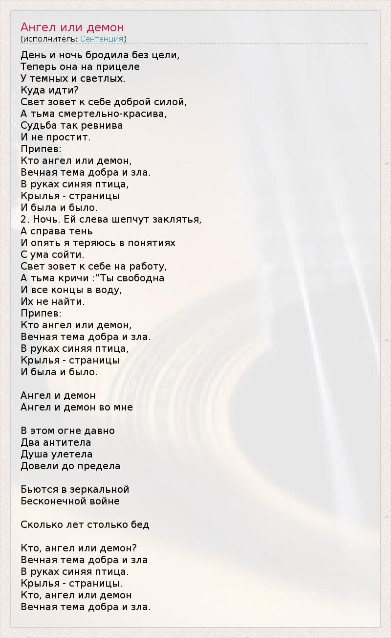ГлавнаяИсполнителиСентенцияАнгел или демон