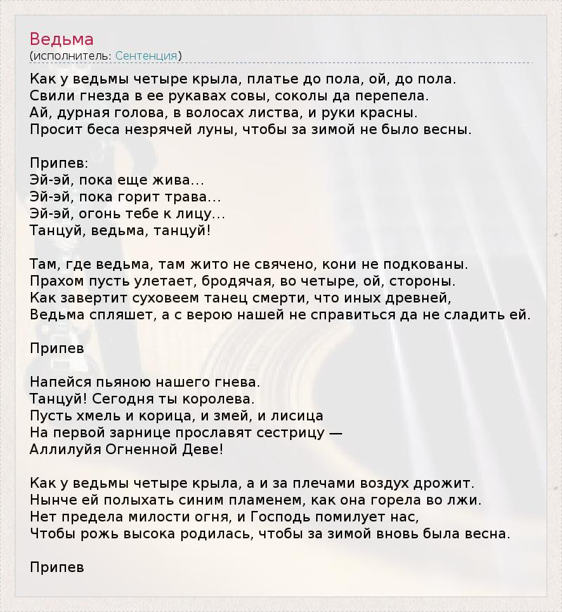 А как ты думаешь, о чем песня "Ведьма" ?
