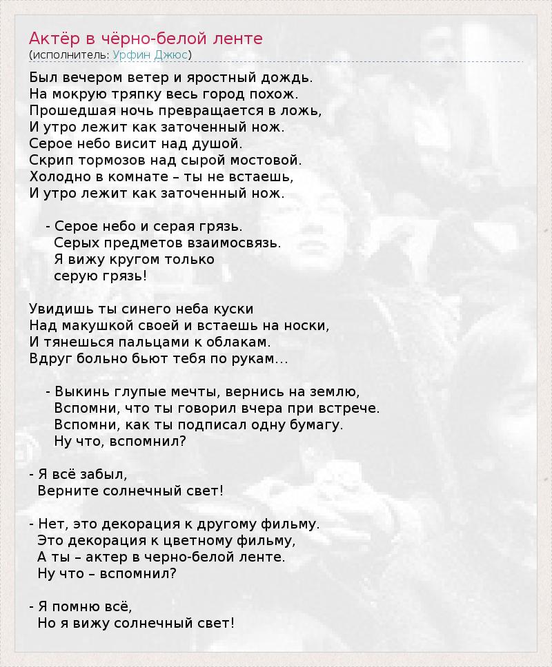 А как ты думаешь, о чем песня "Актёр в чёрно-белой ленте" ?