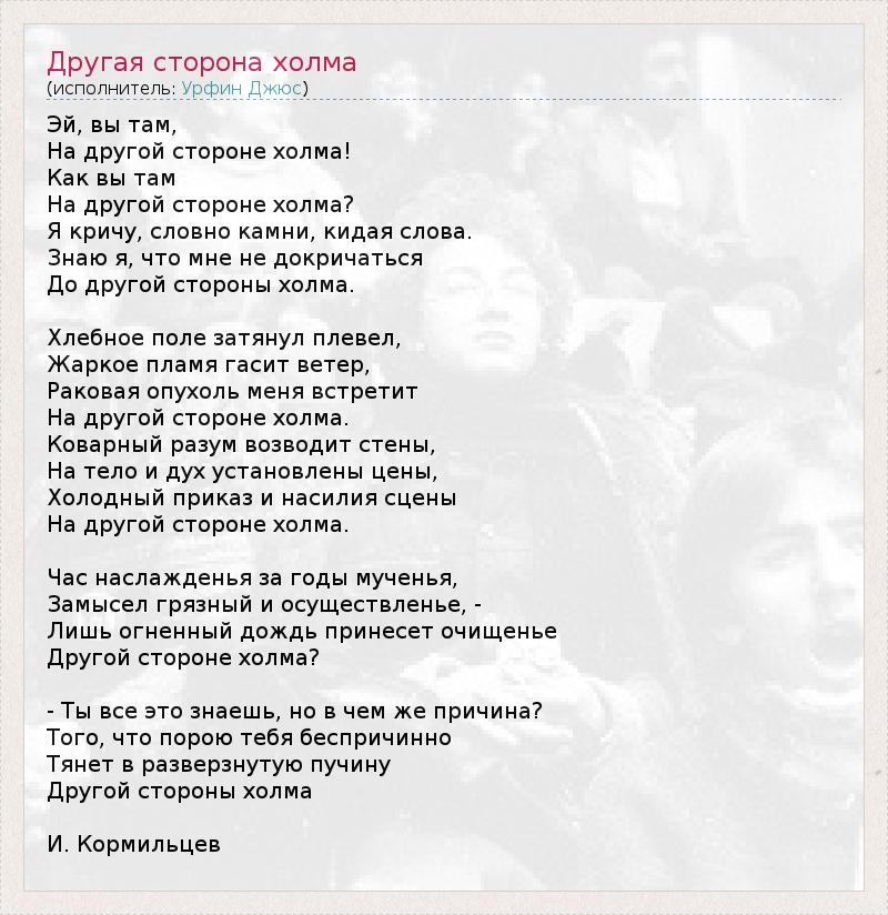 А как ты думаешь, о чем песня "Другая сторона холма" ?