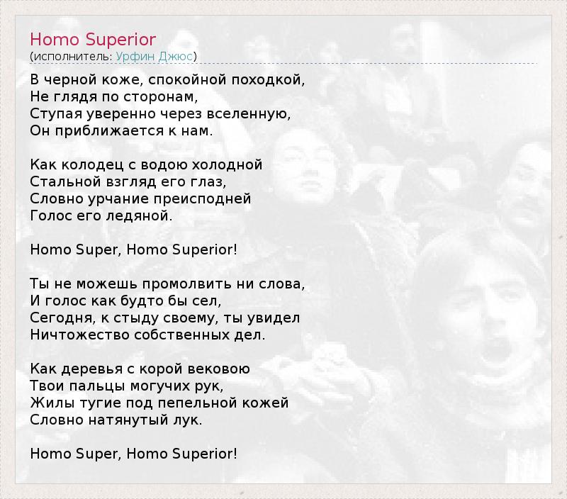 А как ты думаешь, о чем песня "Homo Superior" ?