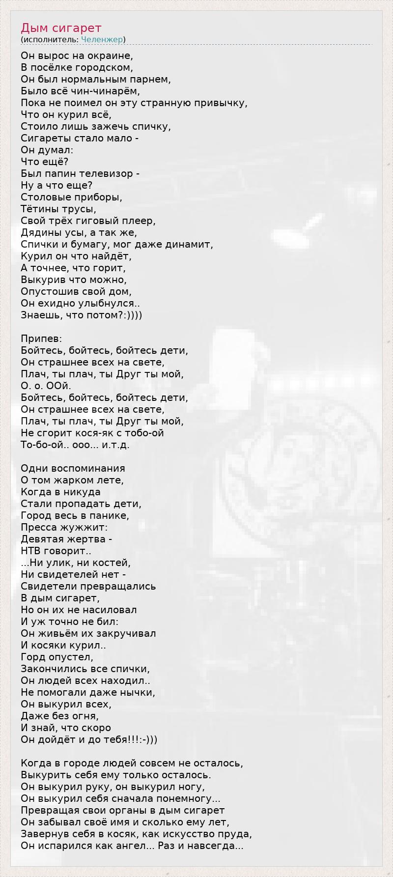 А как ты думаешь, о чем песня "Дым сигарет" ?
