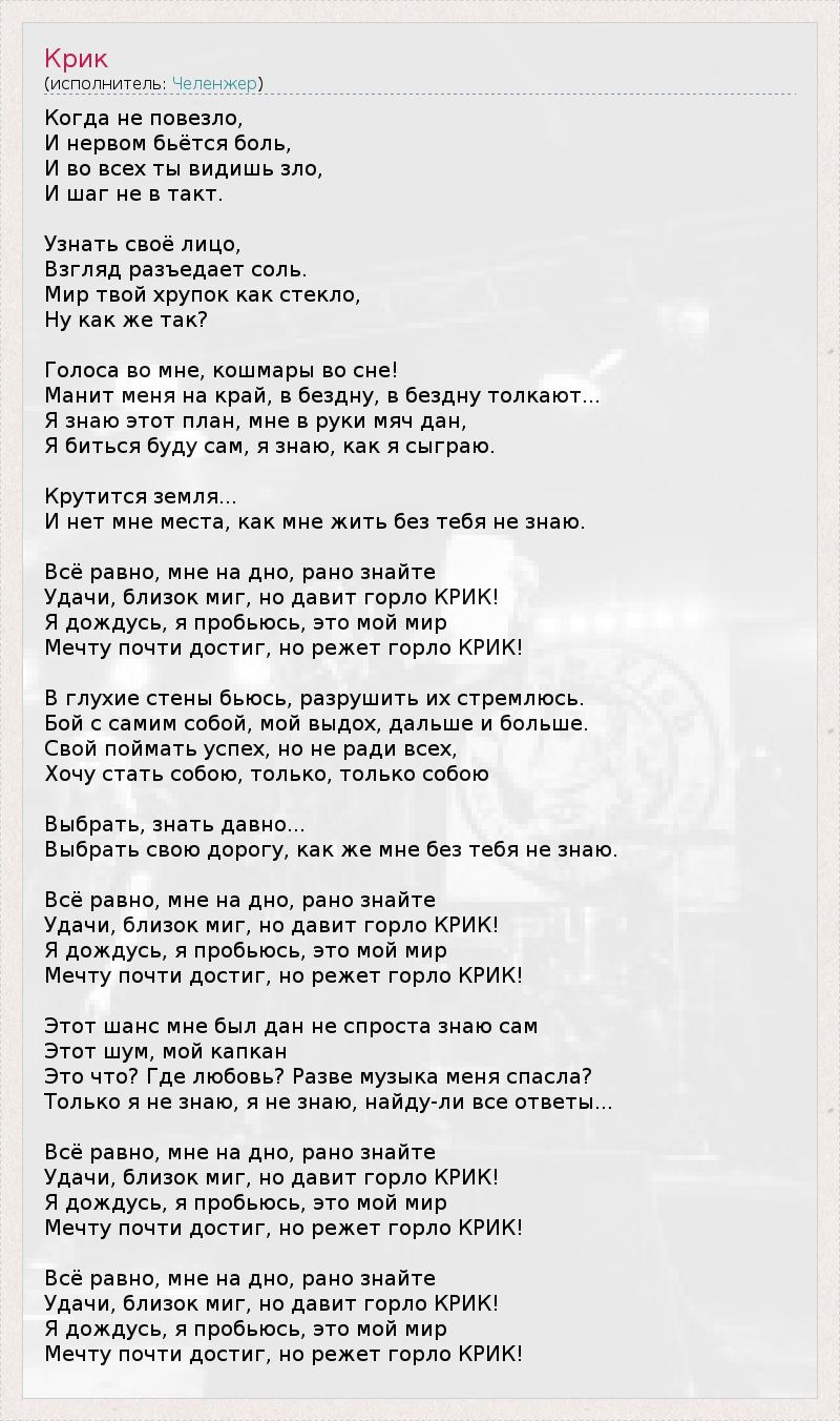 А как ты думаешь, о чем песня "Крик" ?