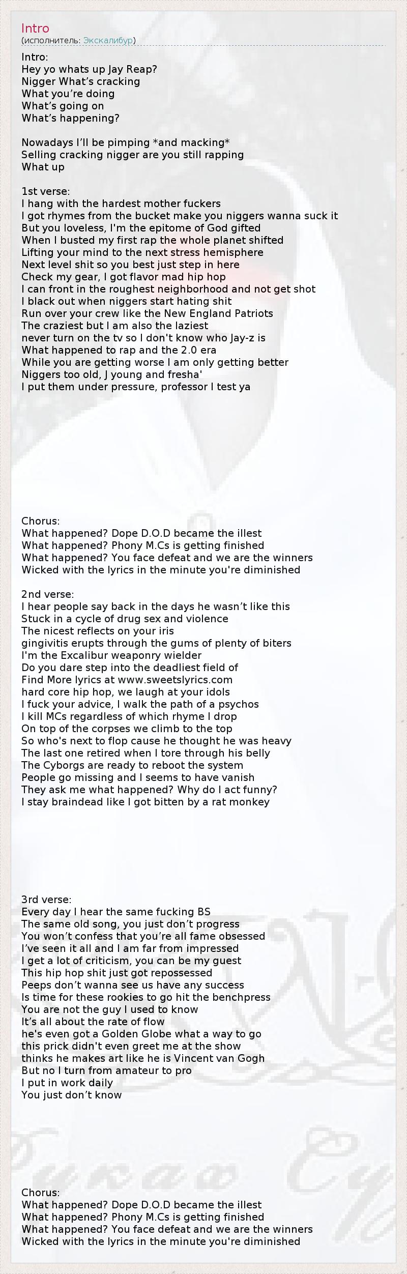 I got rhymes from the bucket make you niggers wanna suck it