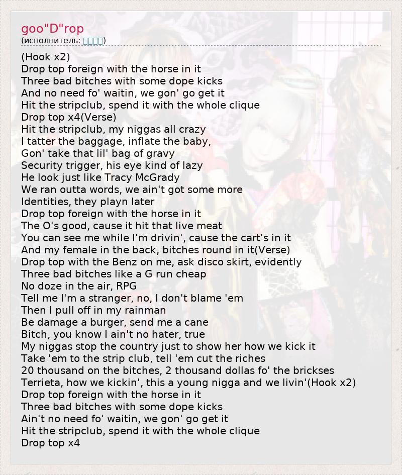 А как ты думаешь, о чем песня "goo"D"rop" ?