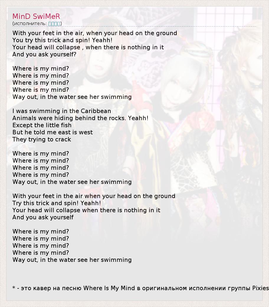 * - это кавер на песню Where Is My Mind в оригинальном исполнении группы Pixies