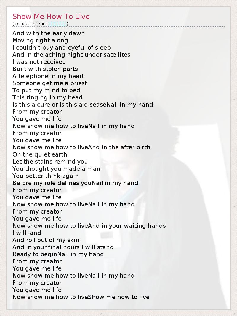 А как ты думаешь, о чем песня "Show Me How To Live" ?