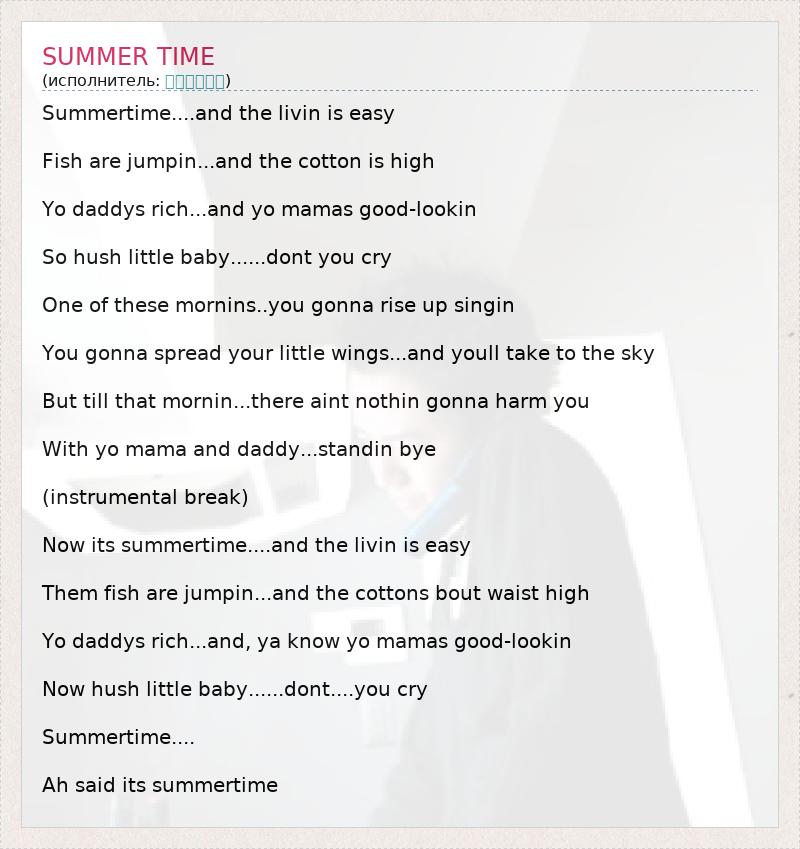 А как ты думаешь, о чем песня "SUMMER TIME" ?