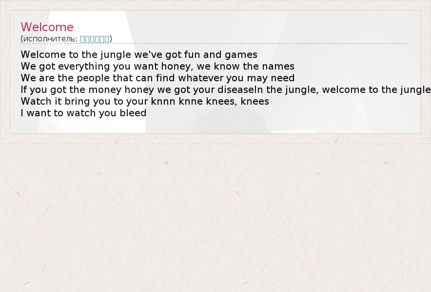 А как ты думаешь, о чем песня "Welcome" ?