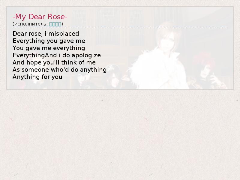 А как ты думаешь, о чем песня "-My Dear Rose-" ?