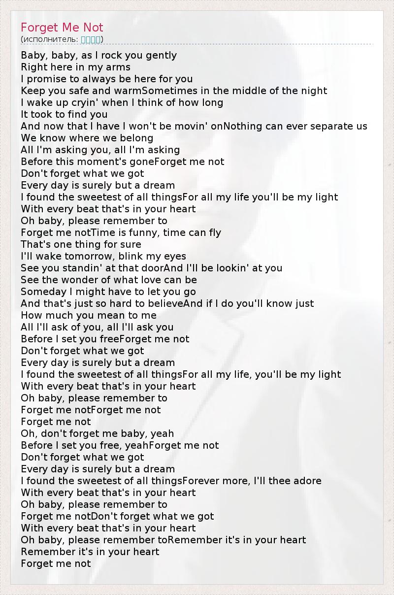 А как ты думаешь, о чем песня "Forget Me Not" ?