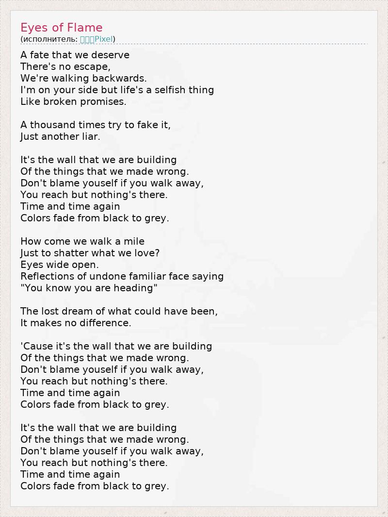 А как ты думаешь, о чем песня "Eyes of Flame" ?