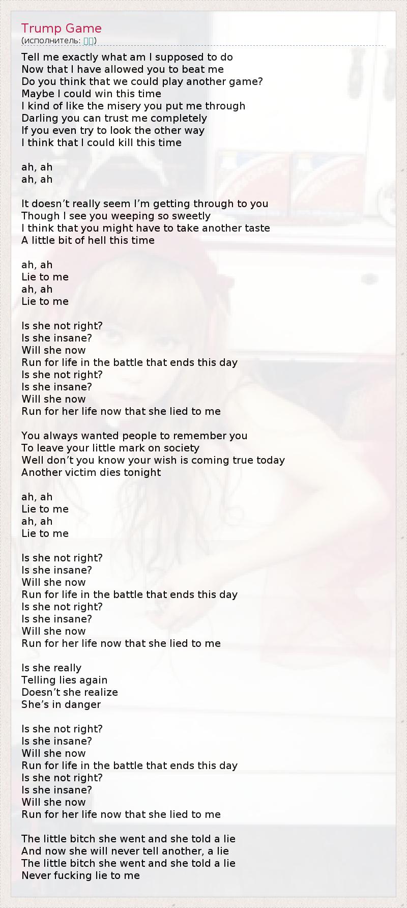 А как ты думаешь, о чем песня "Trump Game" ?